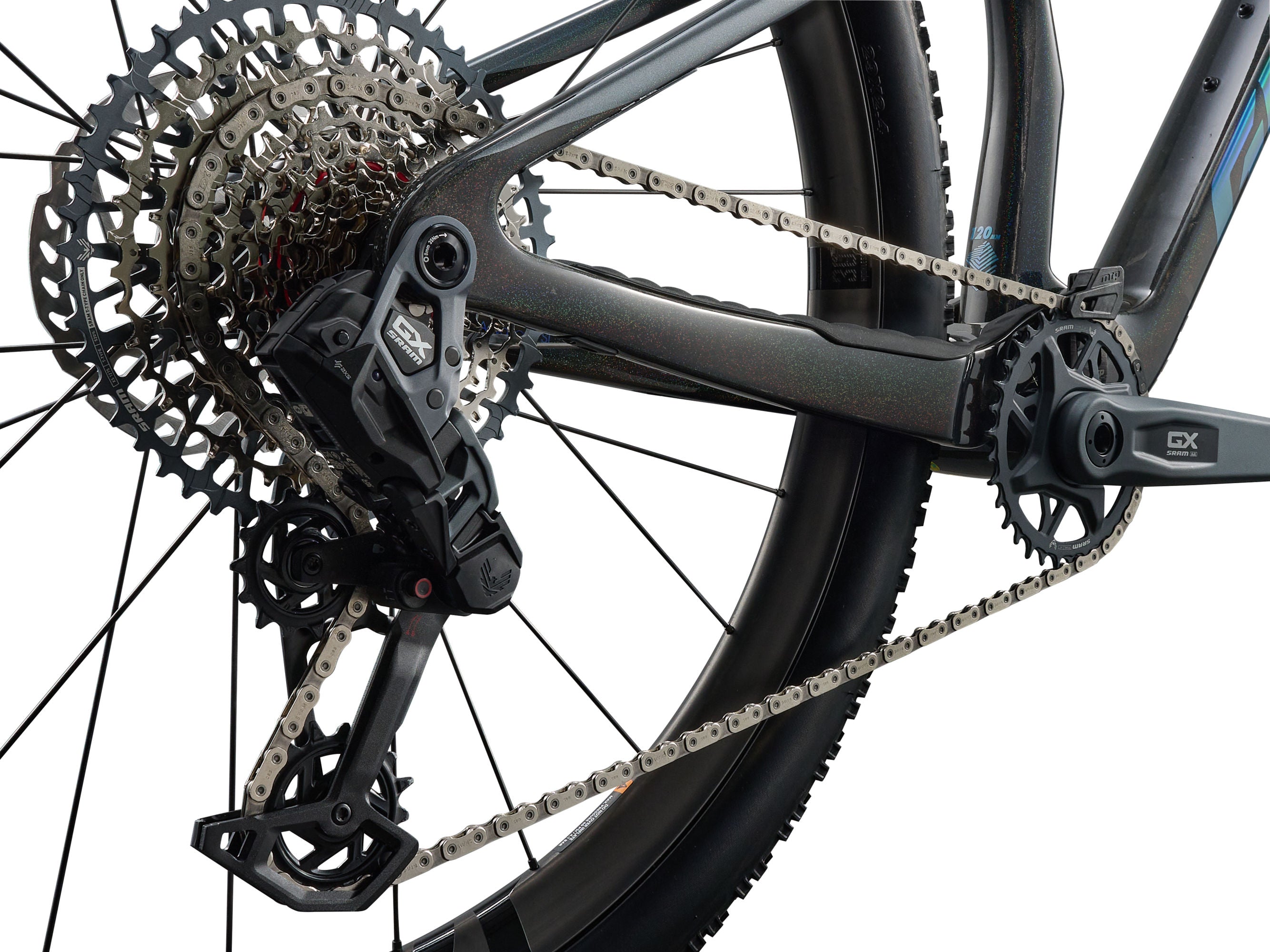 tubeless prepared, 2.4" max tire size, 34t max chainring size, MRP 1x CS chain guide